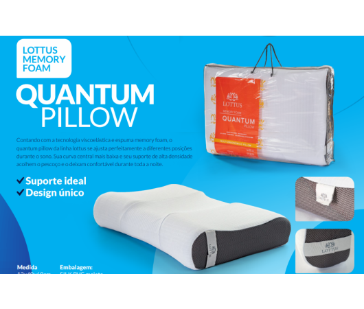 Contando com a tecnologia viscoelástica e espuma memory foam, o quantum pillow da linha lottus se ajusta perfeitamente a diferentes posições durante o sono. Sua curva central mais baixa e seu suporte de alta densidade acolhem o pescoço e o deixam confortável durante toda a noite.